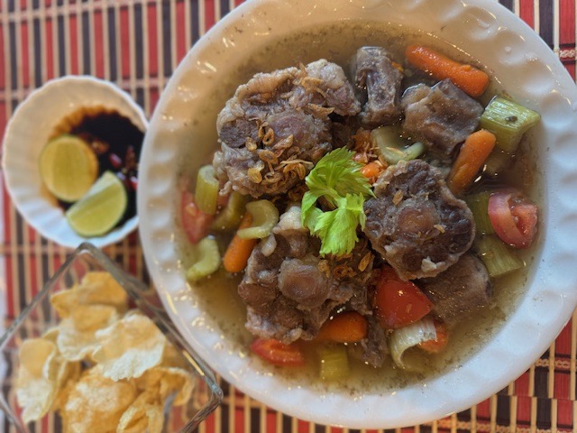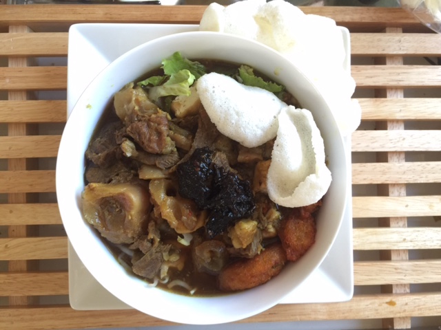Beef tendon sup is very popular Surabaya typical sup catered by street vendors.
